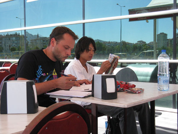 Zwischenstop in Kayseri, Michael und Shigoru planen die Weiterreise
