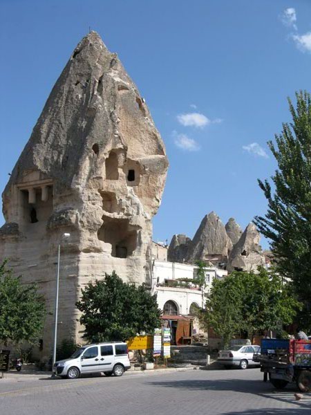Kappadokien ist entstanden, als ein Vulkan ausgebrochen ist und die ganze Landschaft mit Lava bedeckt hat. In diesen Tuff-Stein haben die Einwohner ihre Häuser gegraben und dort drin gelebt. Es gibt sogar ganze unterirdische Städte, die ich leider nicht besuchen konnte.