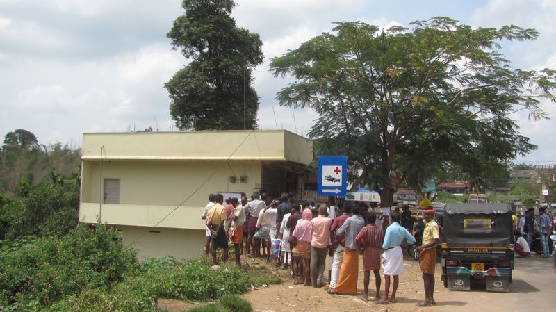 Zuerst dachten wir, hier stehen die Leute für’s Krankenhaus an. Das war aber gegenüber. hier gibt’s Alkohol zu kaufen.