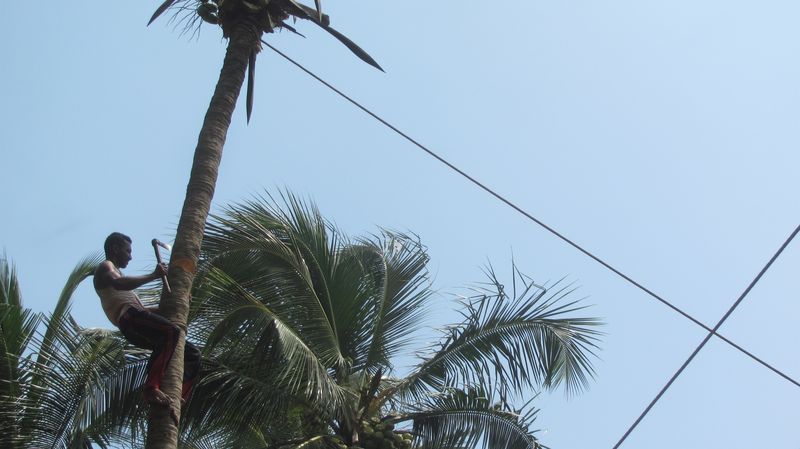Im Resort wird eine Palme gefällt.