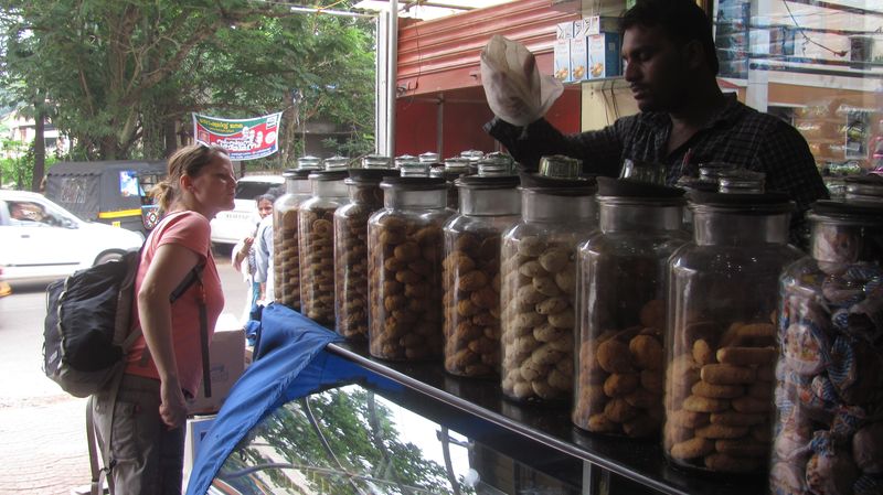Antje kauft noch ein paar Kekse für die Zugfahrt nach Cochin.