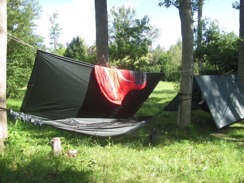Ich lüfte meinen Schlafsack in der Morgensonne