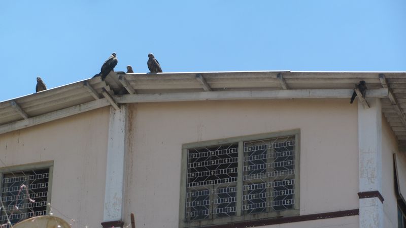 Greifvögel in der Innenstadt. Bei uns werden Naturschutzgebiete ausgewiesen, hier lässt man einfach ein bißchen Müll auf den Straßen liegen.