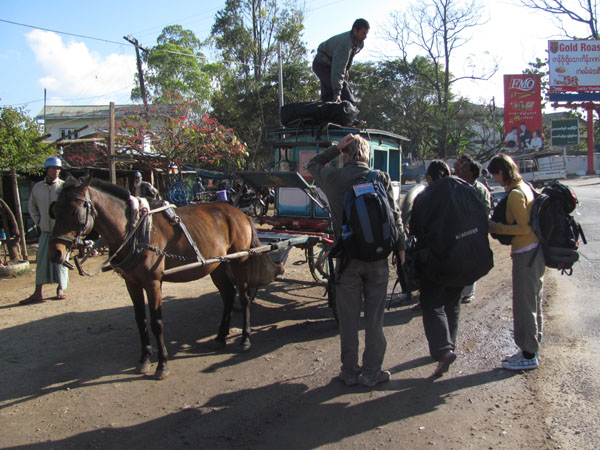 Hingekommen sind wir per Kutsche, was die übliche Form eines Taxis in Pyin U Lwin ist.
